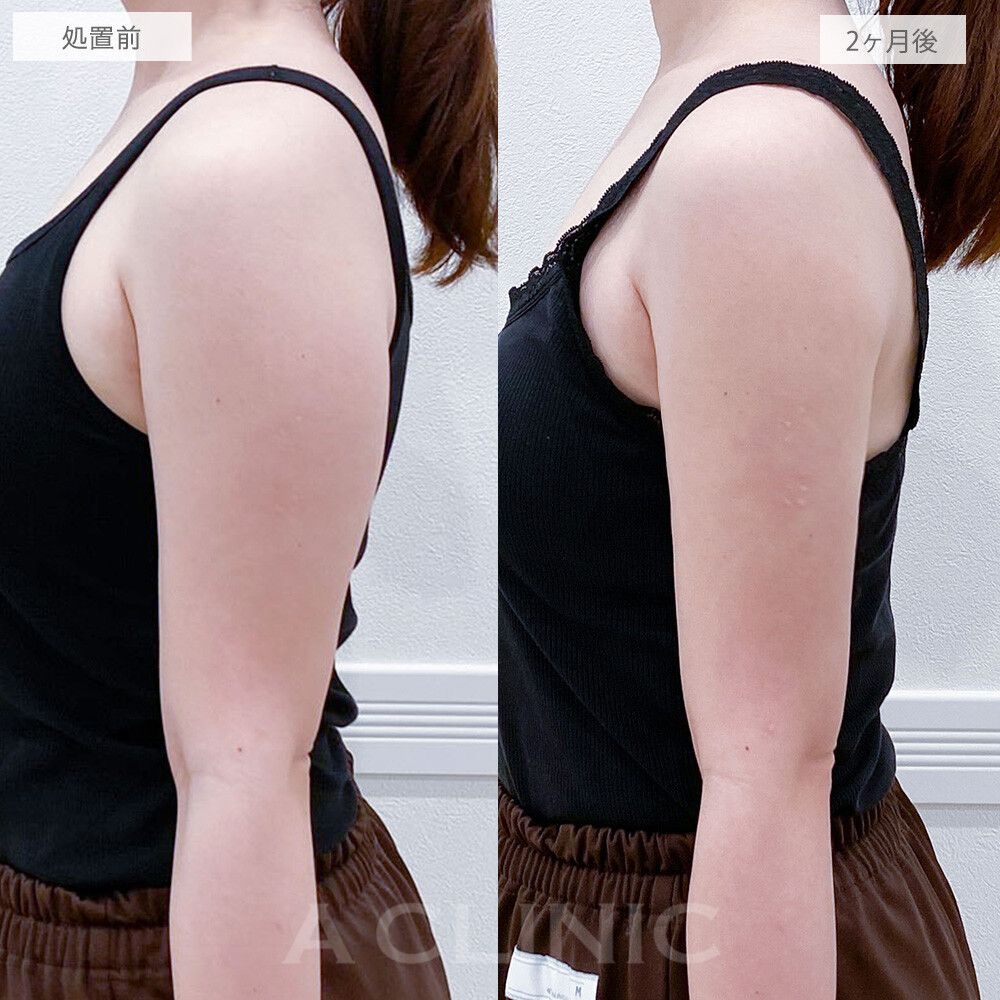 筋トレも食事制限もなしで即日腕痩せ!二の腕スリム脂肪吸引の処置前と2ヶ月後の症例です 30代女性美容整形クリニックA CLINIC 公式。