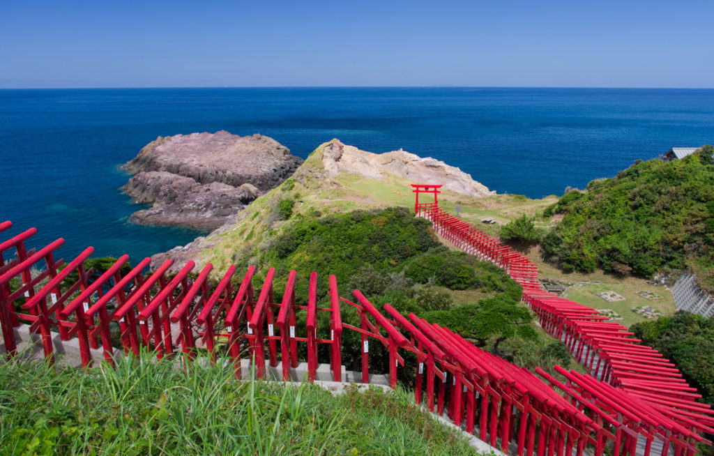 海を見渡す元乃隅神社の鳥居 - 山口県の圧巻景色。