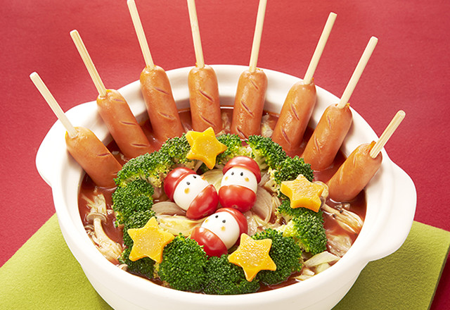クリスマスパーティートマト鍋おやこのニコニコ食卓しまじろうと野菜をおいしく!こどもちゃれんじ&カゴメ。