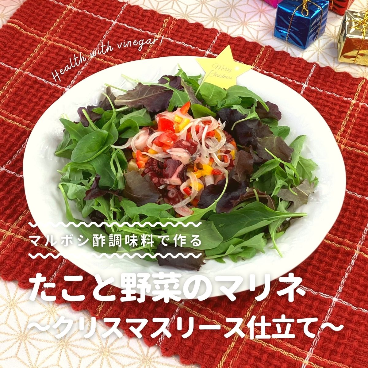たこと野菜のマリネ ~クリスマスリース仕立て~マルボシ酢。