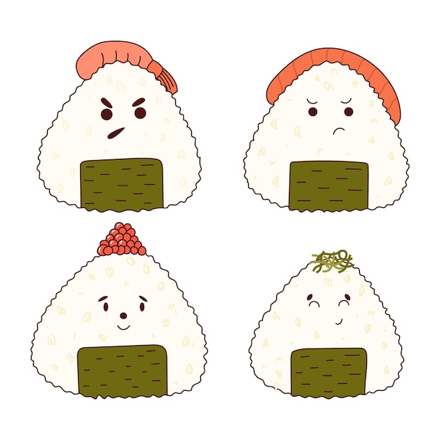 いろいろな表情のかわいいおにぎりキャラクターのイラストセット209842206 毎月1点無料 フリー のストックフォト イメージマート。