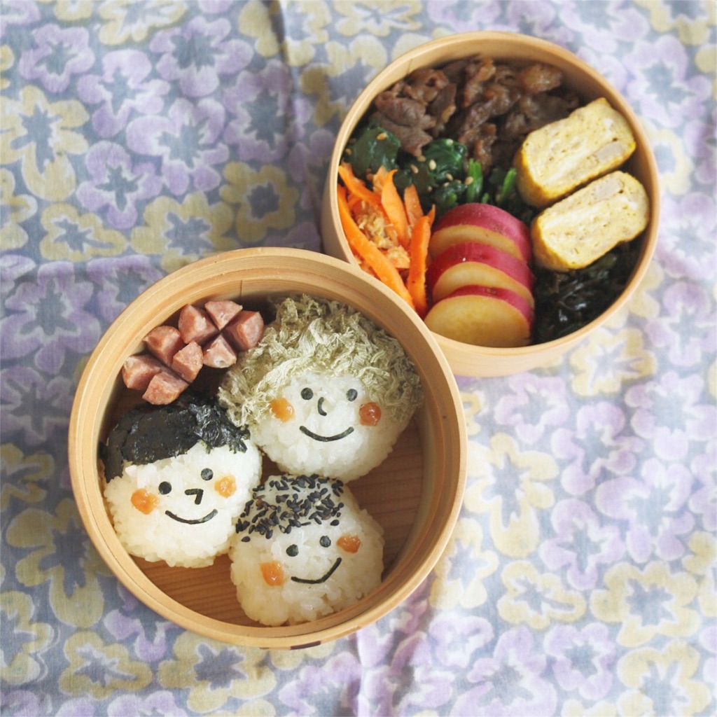 簡単かわいい!曲げわっぱで作る「顔おにぎり」弁当 - micvanyのお弁当記。