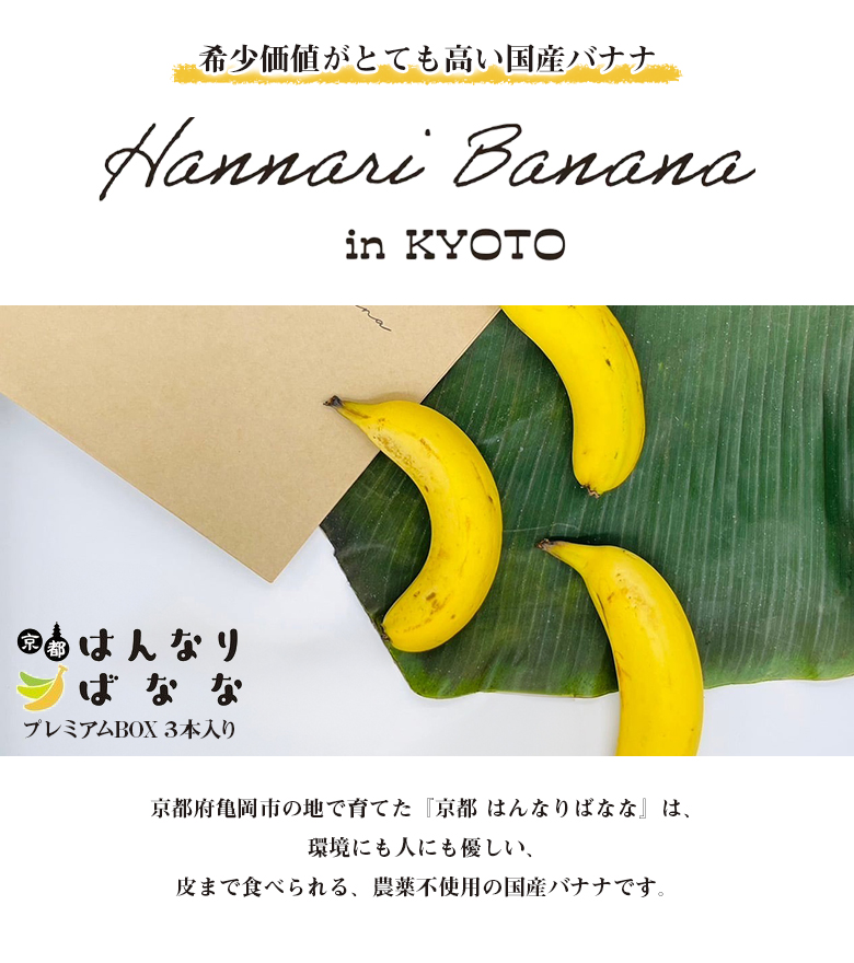 京都はんなりばなな プレミアムBOX 3本入り 高級バナナ 国産バナナ 希少性 高級フルーツ 農薬不使用 バナナ 果物 フルーツ 食品 SDGs環境に優しい 京都府亀岡市。