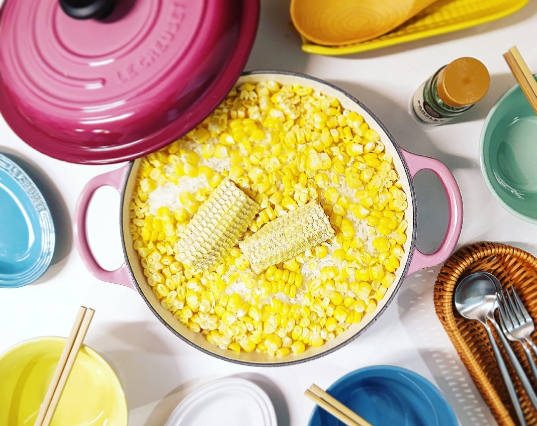 ル・クルーゼでごはんを炊く◇トウモロコシごはん作りました ココットロンド20cmわが家のここち。