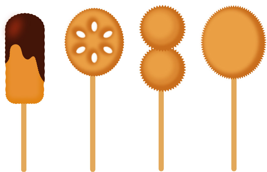 フリーイラスト4本の串カツパブリックドメインQ:著作権フリー画像素材集。