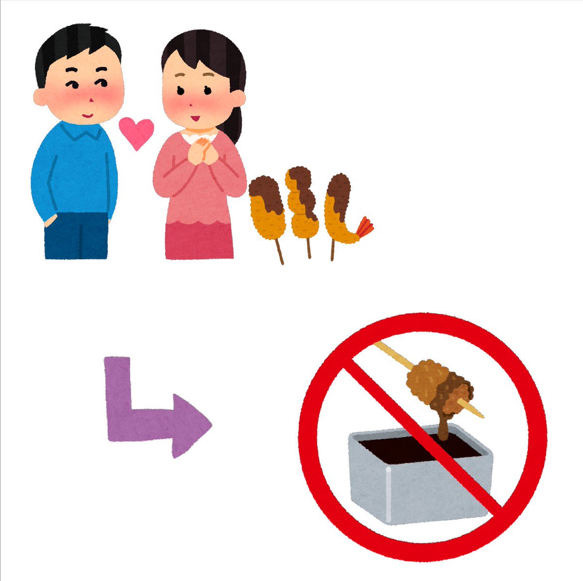 串カツの二度漬け禁止のマークかわいいフリー素材集 いらすとや。