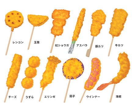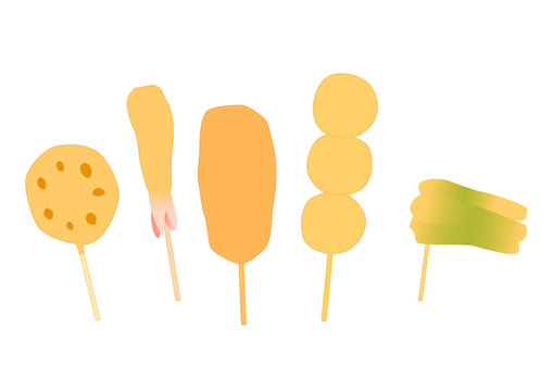 串カツのイラスト。左から豚ヒレ、うずら、れんこんの串カツです。のイラスト素材86049268- PIXTA。