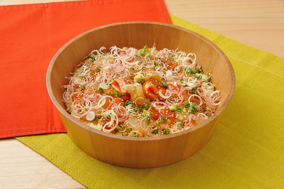 鯛とサーモンの黒酢飯ちらし寿司四季のコクうまきび砂糖レシピウェルネオシュガー株式会社。