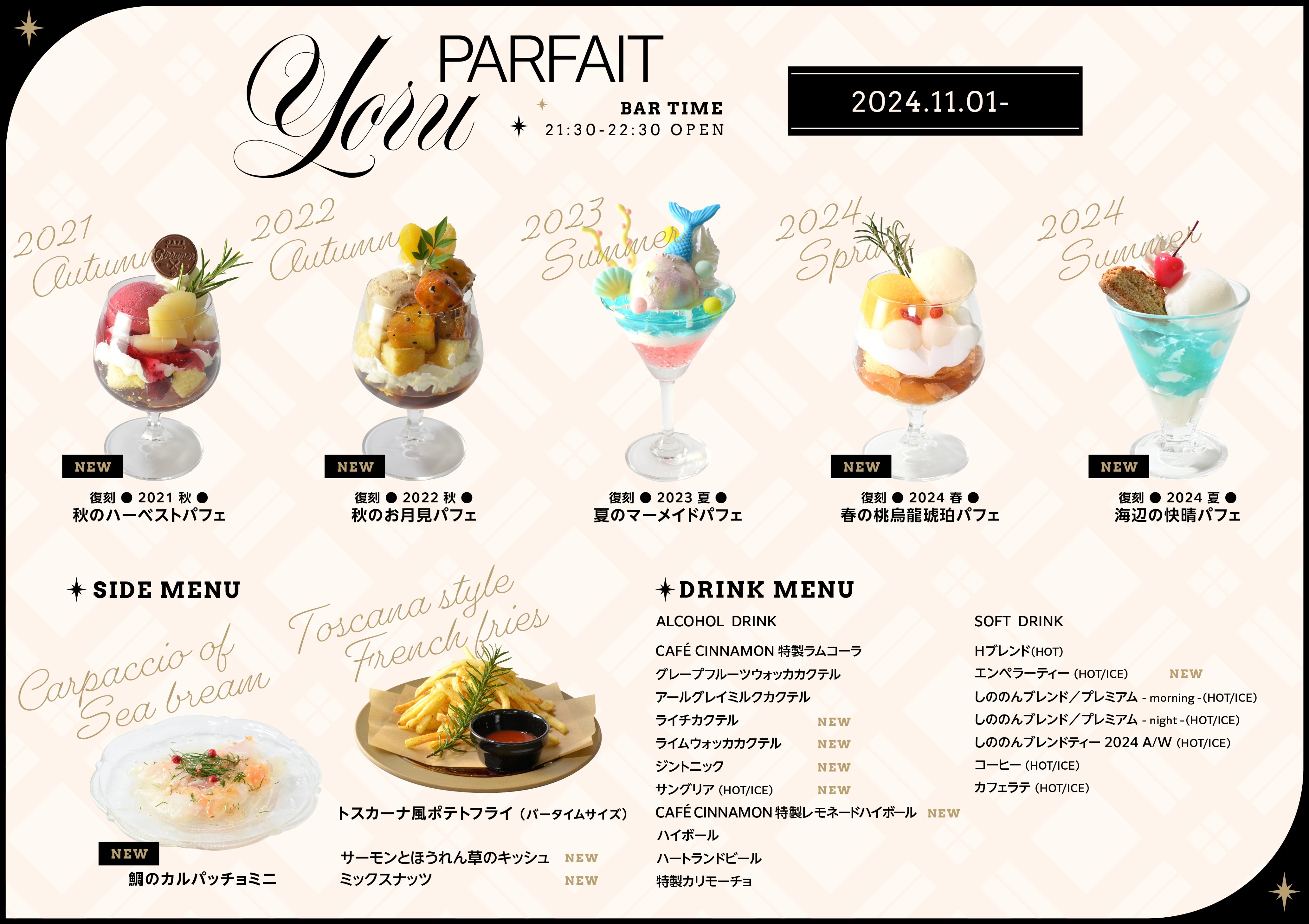 CAFE CINNAMON on X: " Petit Renewal𝟸𝟶𝟸𝟺.𝟷𝟷.𝟶𝟷より🍽️ショッパー&コースターの デザインリニューアル 🍽️トスカーナ風ポテトフライを おうちでも楽しめる「IMO powder」発売 🍽️ BARTIME𝒴ℴ𝓇𝓊パフェ☽ 提供メニューが変更 ぜひチェックして。