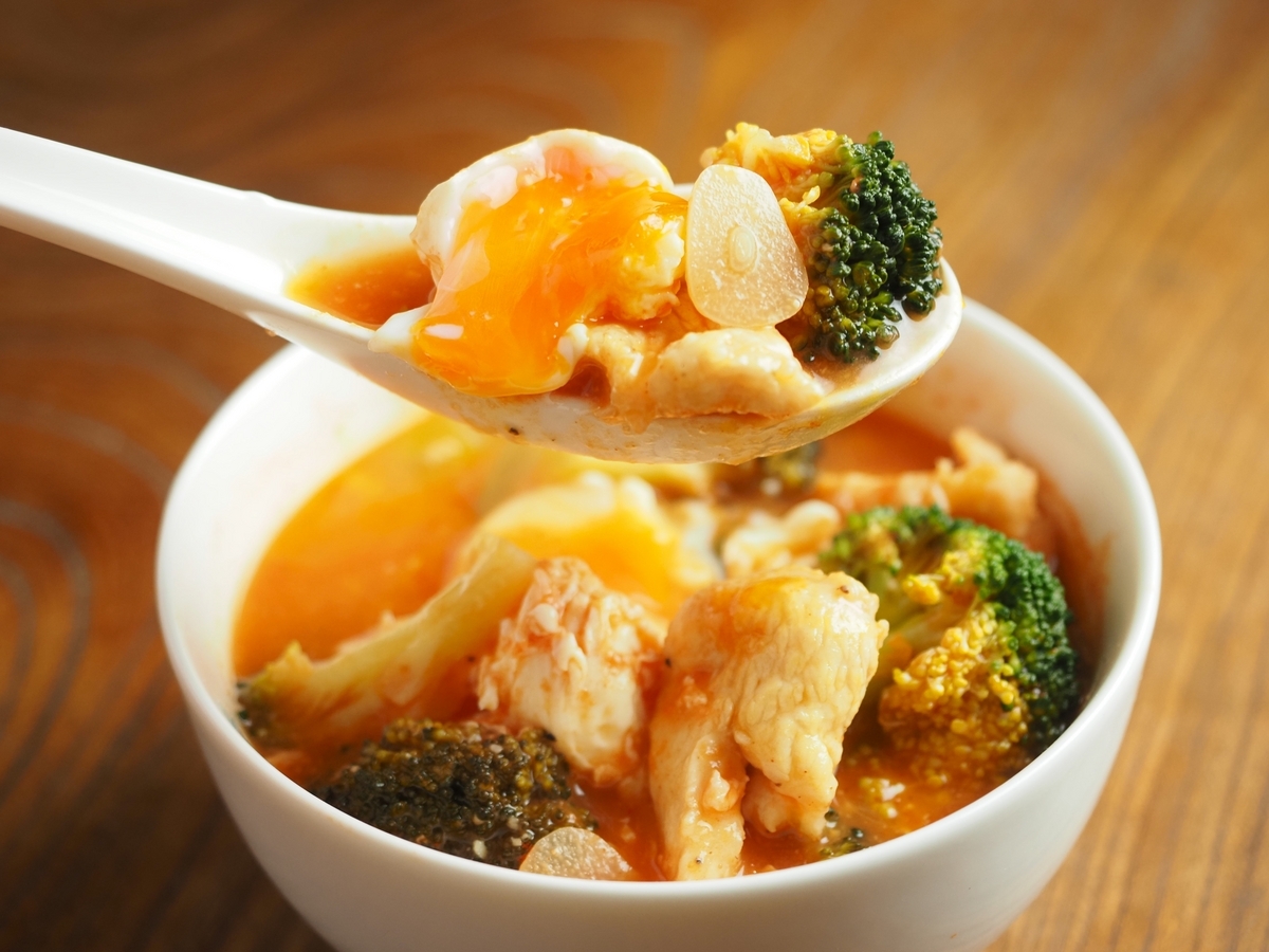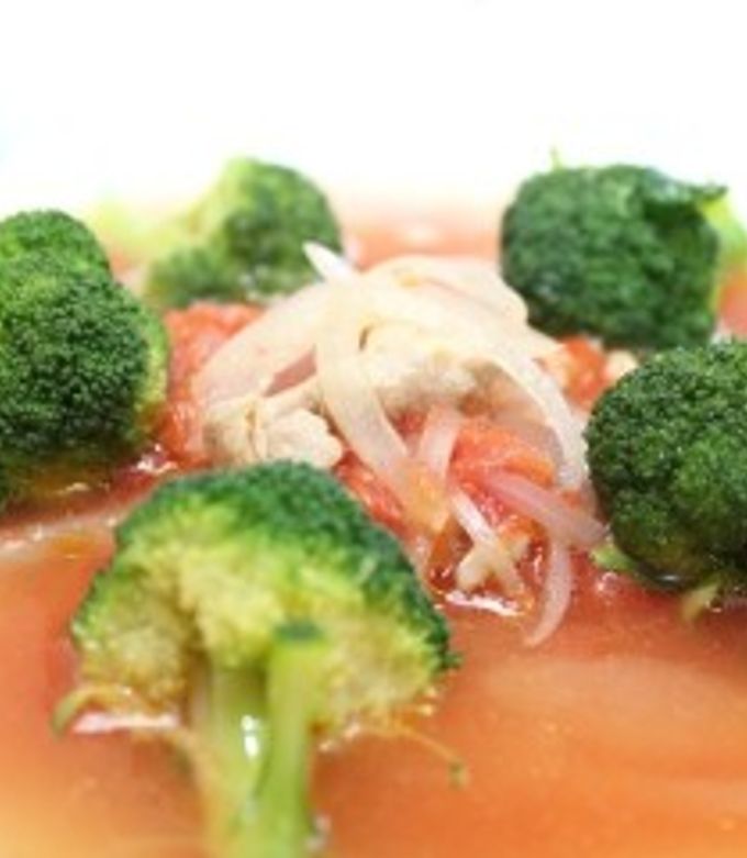 ブロッコリー、鶏むね、トマトジュースでたんぱく質が摂れる「みそトマトスープ」をうま味たっぷりに仕上げるレシピ 筋肉料理人- メシ通ホットペッパーグルメ。