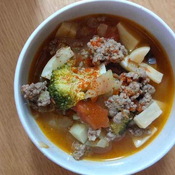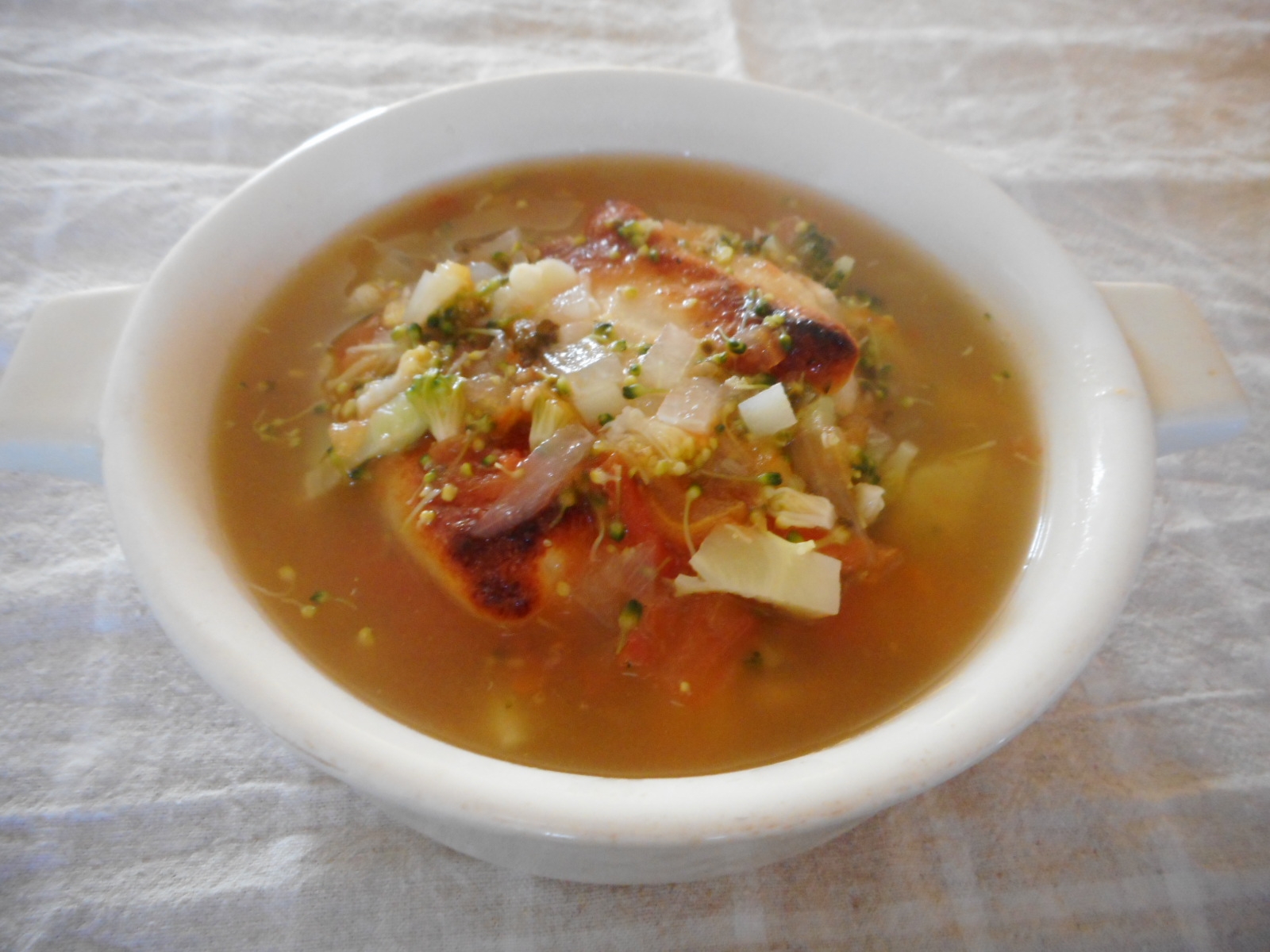 ブロッコリーとトマトのさっぱりミネストローネ千代の一番。