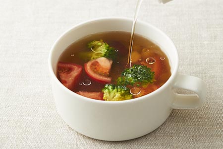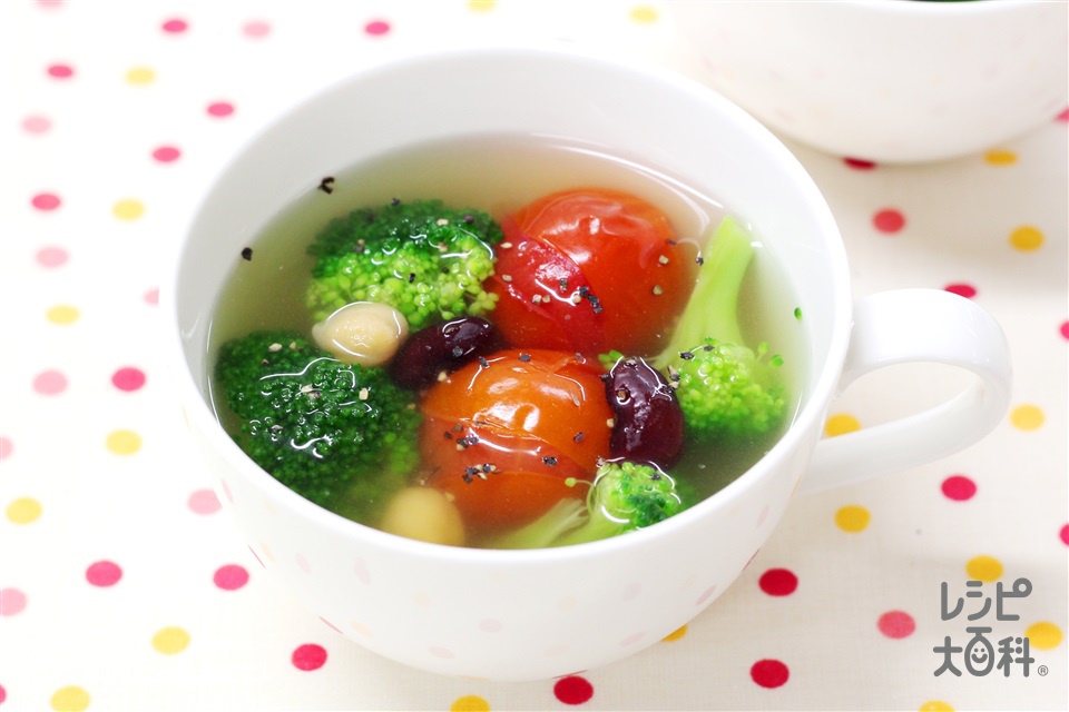 トマトとブロッコリーと豆のスープわくわくレシピ植物のチカラ 日清オイリオ。