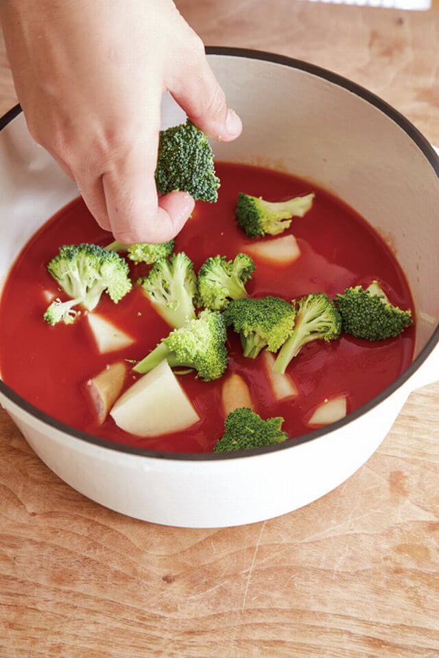 「ブロッコリーとソーセージのトマトジューススープ 」レシピ 近藤幸子さん。