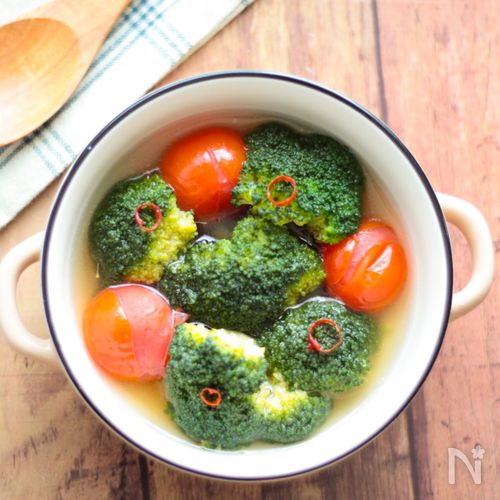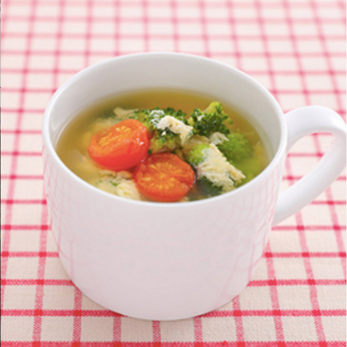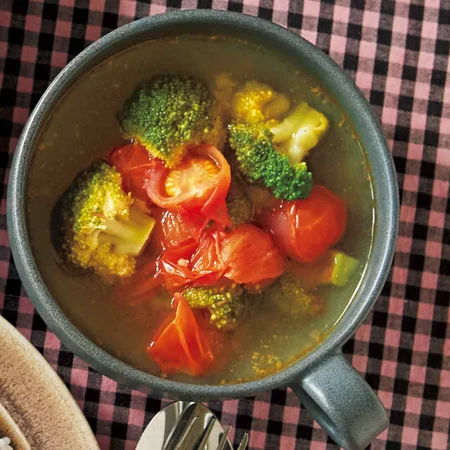 ビタミンとミネラル豊富な彩りスープ『ブロッコリーとトマトのスープ』。