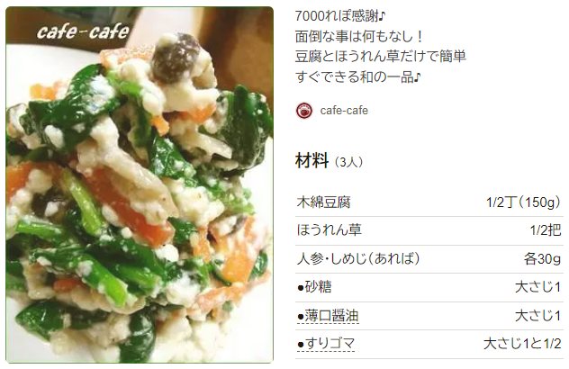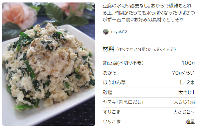 ほうれん草の白あえのレシピ 作り方:白ごはん.com。