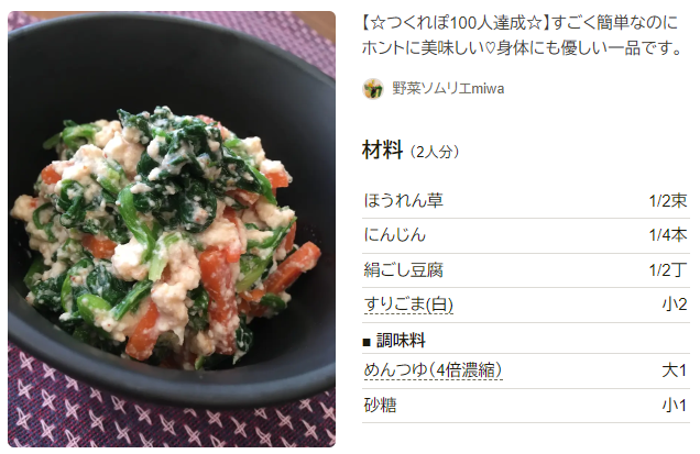 チンして混ぜるだけ ほうれん草の白和え レシピ・作り方Tasty。