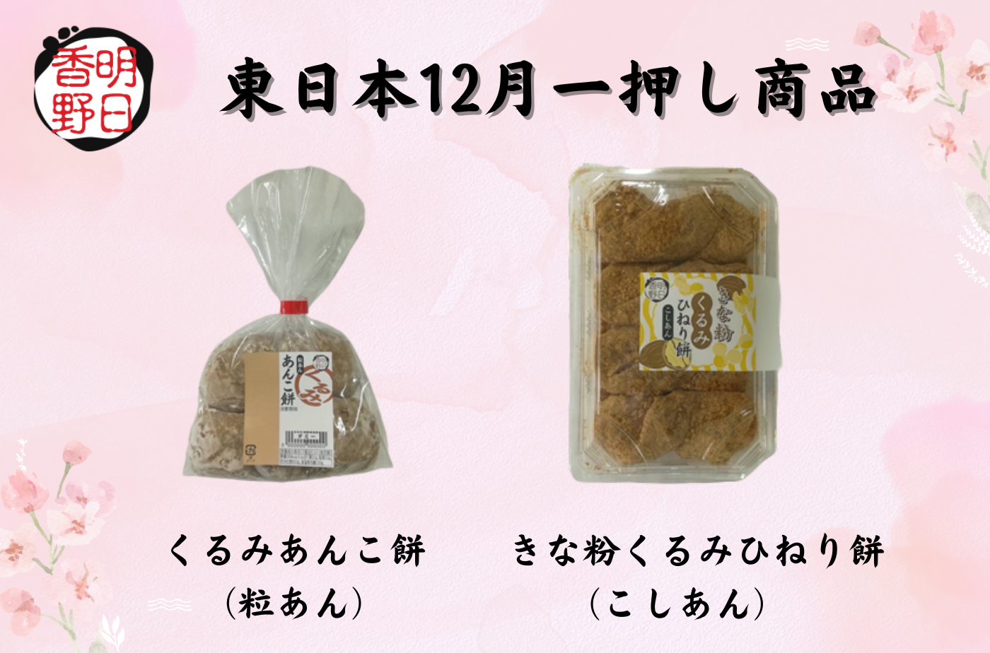 あんこやくるみをたっぷり楽しめるお餅が登場! 明日香野12月の東西一押し和菓子をご紹介 - 明日香食品株式会社。
