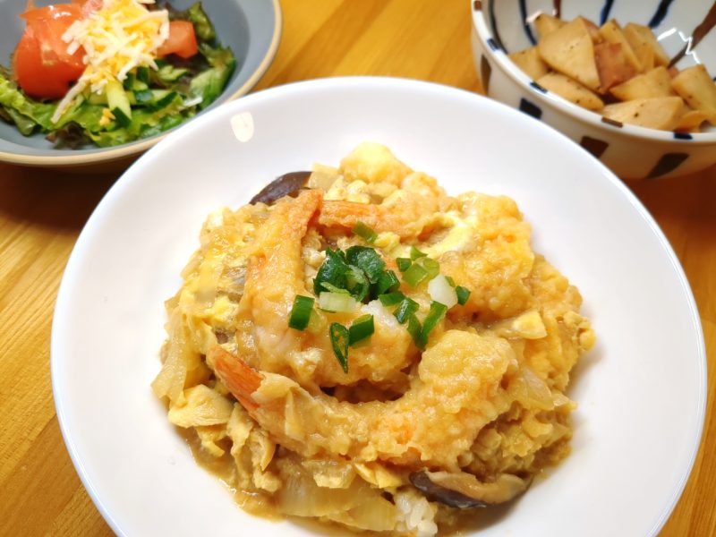 栄養バランスのよい海老天卵とじ丼献立管理栄養士・調理師 とものうようこ トモ栄養バランスのとれた献立のつくり方。