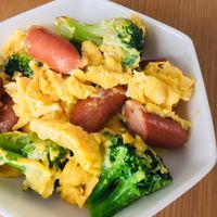 スピードおかず! ブロッコリーとウインナーの卵炒め。