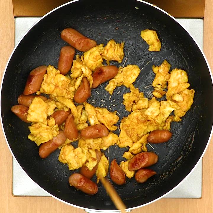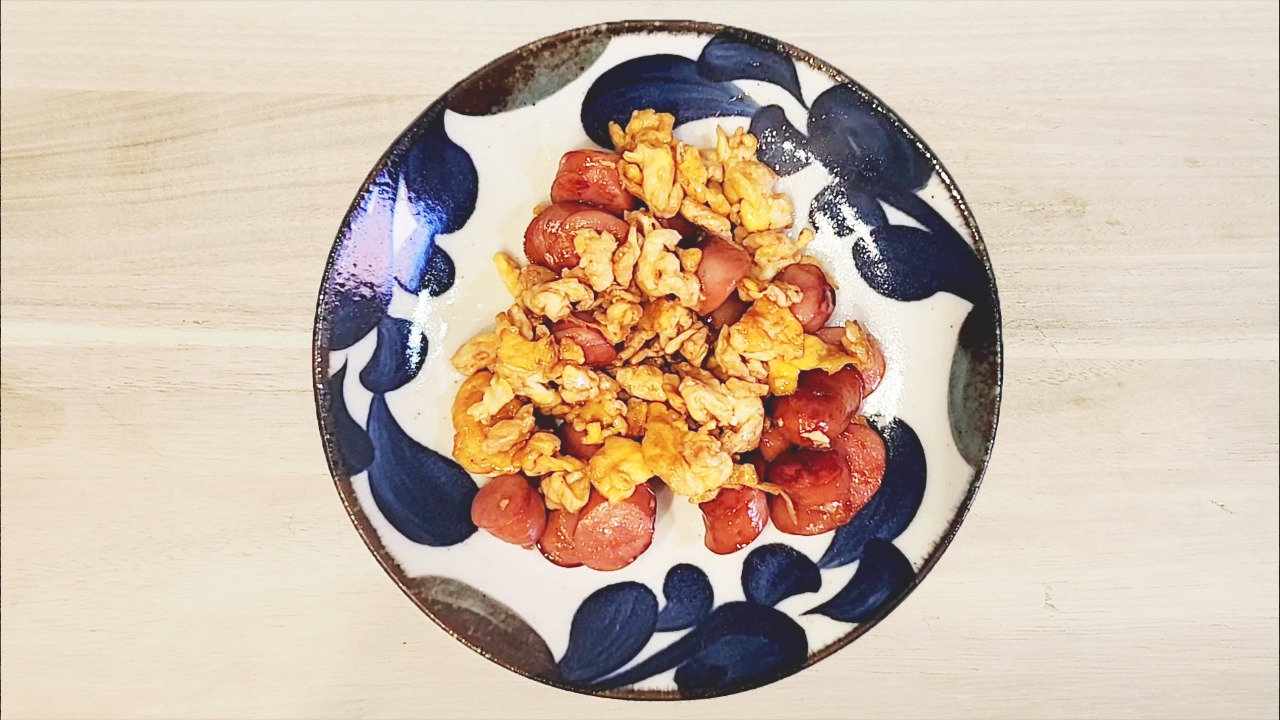 卵とウィンナーでできる簡単最強おかず!ご飯が超ススム『卵とウィンナーの悶絶炒め』の作り方 - だれウマ。
