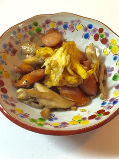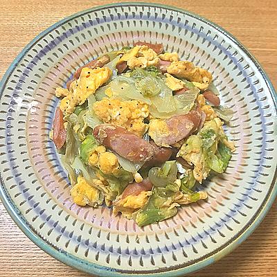 ご飯が進む! ソーセージ ウインナー と卵のオイスター炒め。