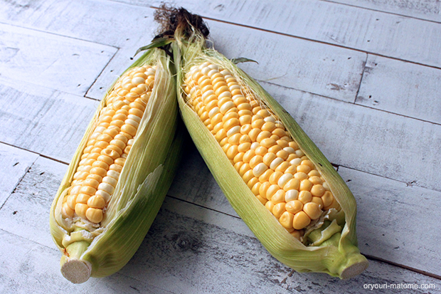 ジューシーなとうもろこしの茹で方と茹で時間:白ごはん.com。