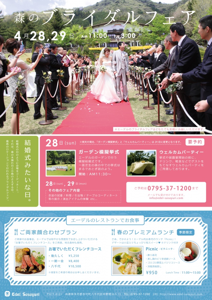 Edel Sasayuri ブライダルフェアSpring兵庫県多可町のデザイン会社、株式会社ikka morrow -イッカモロウ。