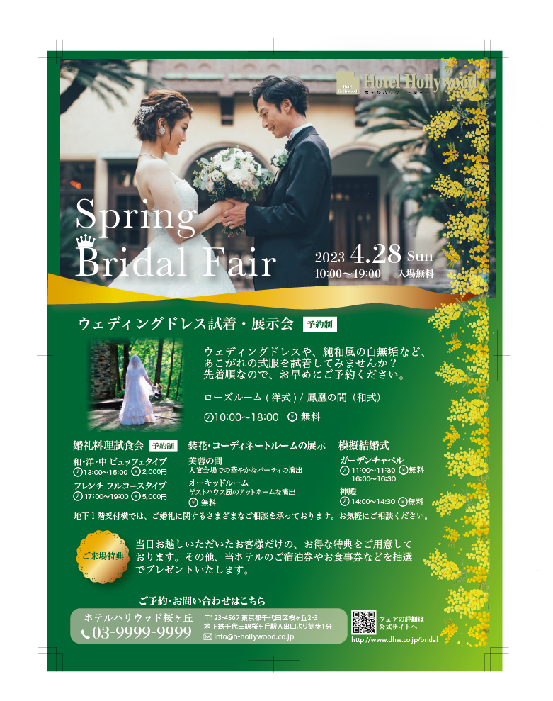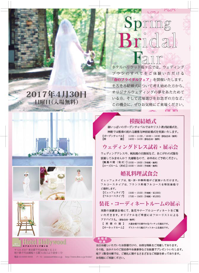 課題制作:架空結婚式場「春のブライダルフェア」フライヤーKurosawa。