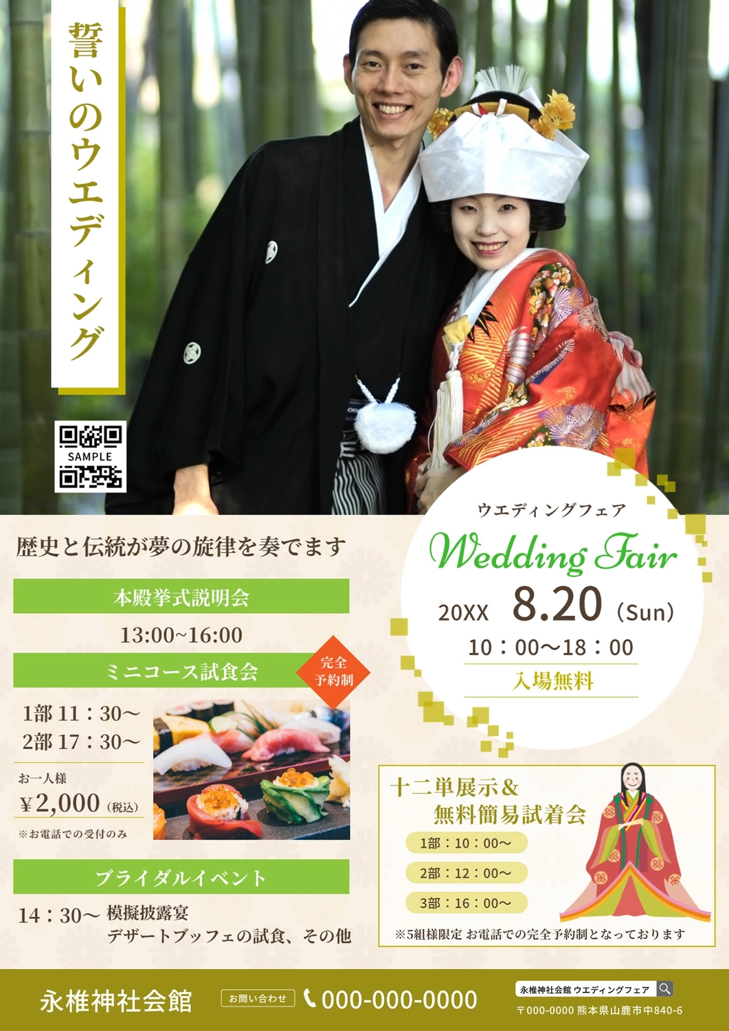 和式向けブライダルフェアのチラシの無料チラシテンプレート 12561 - デザインAC。