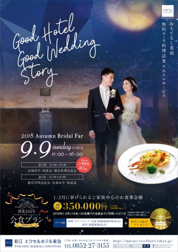 9月9日はブライダルフェアを開催します!松江エクセルホテル東急 ブライダル 島根県松江市 松江市の結婚式場は松江エクセルホテル東急へ 公式。