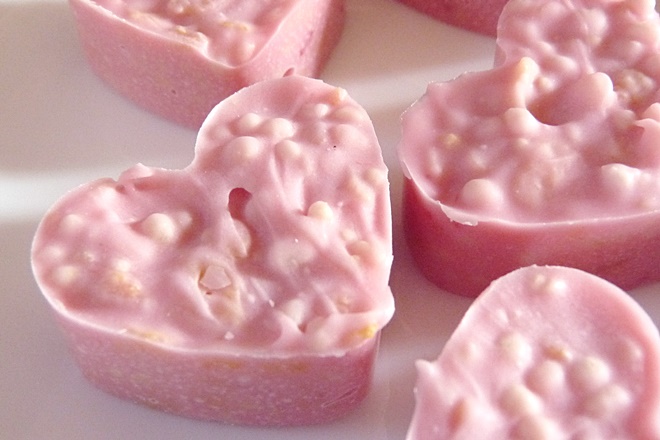 バレンタインレシピ ハートのいちごクランチチョコ。