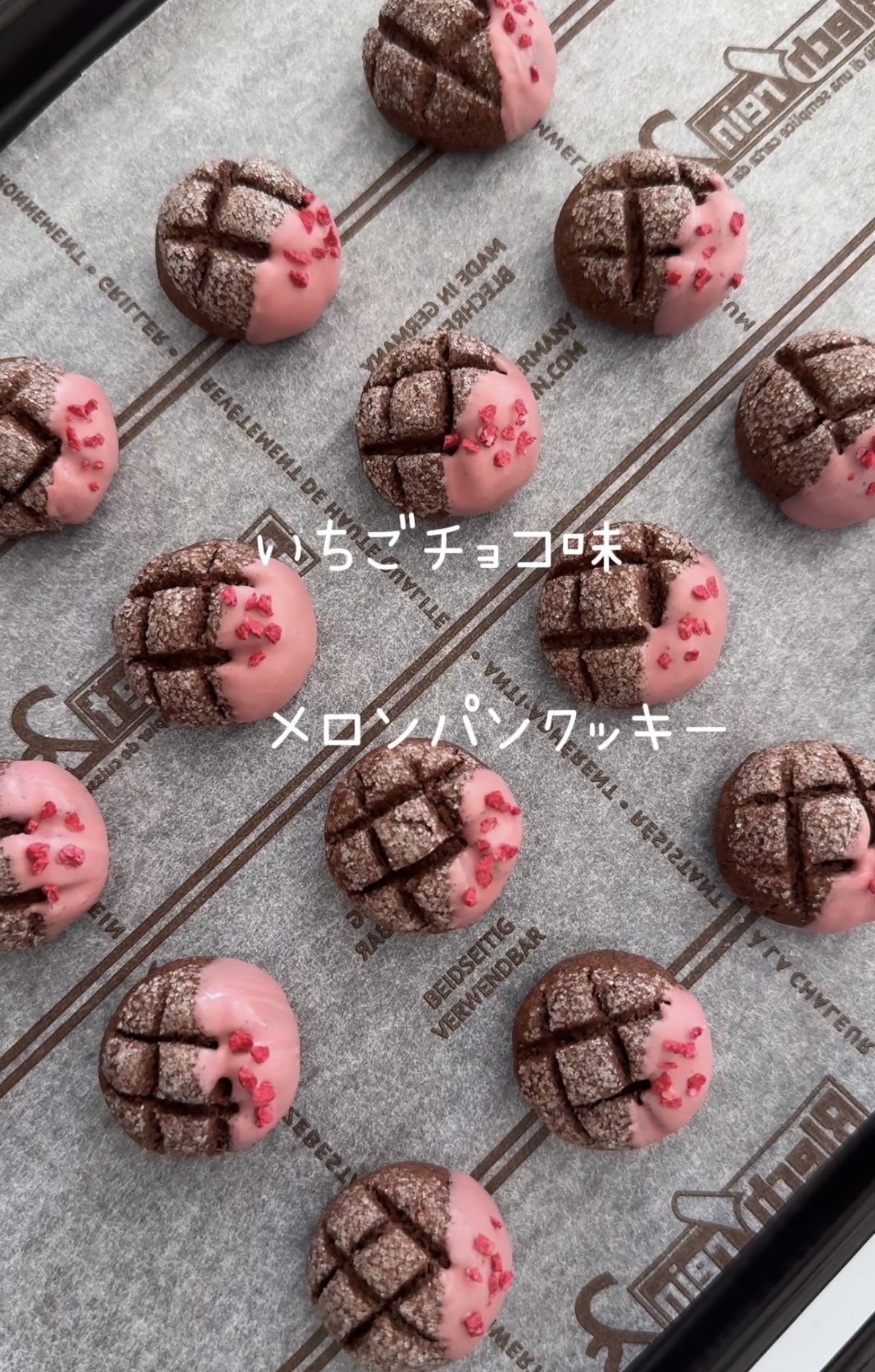レシピ いちごチョコ味メロンパンクッキー🍓カリッと美味しくて可愛いクッキー♡メロンパンクッキーレシピだよ!チョリーナ チョコ島。