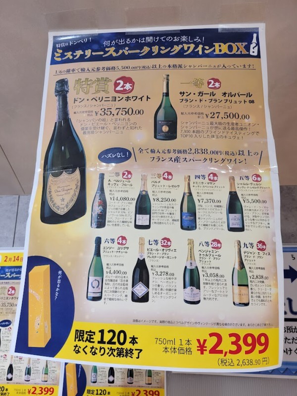特賞が35,750円のドンペリ オオゼキ調布店の"ミステリースパークリングワインBOX"にチャレンジしてみた : ちょうふ通信。