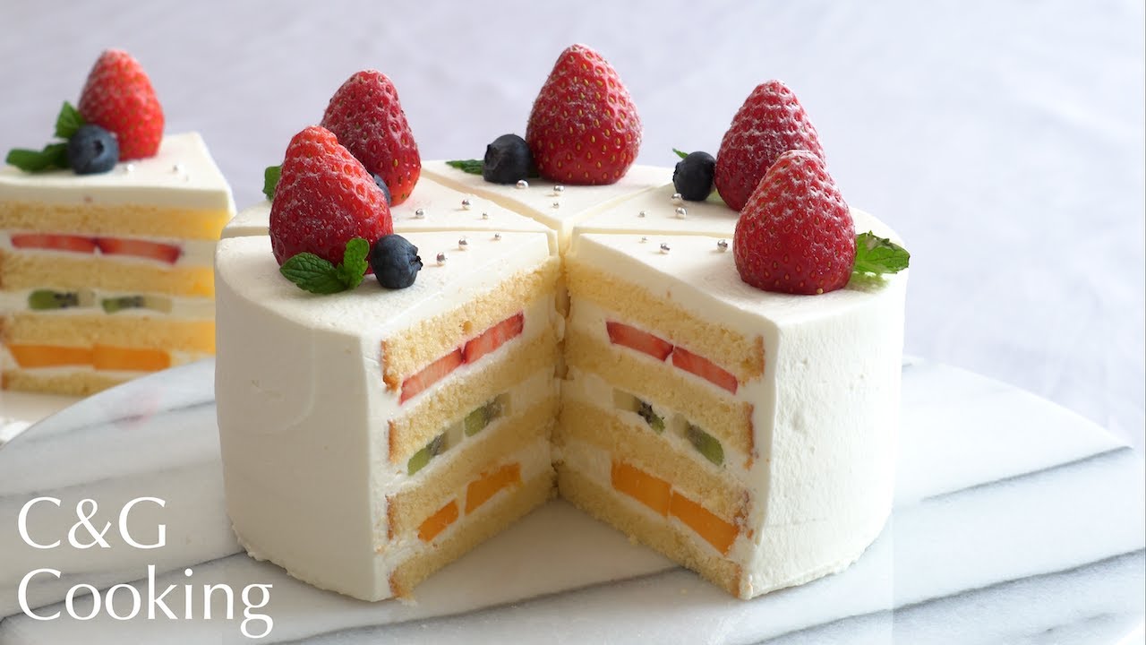 ひと工夫 綺麗な断面のフルーツケーキの作り方ショートケーキ お菓子作り フルーツケーキ asmr。