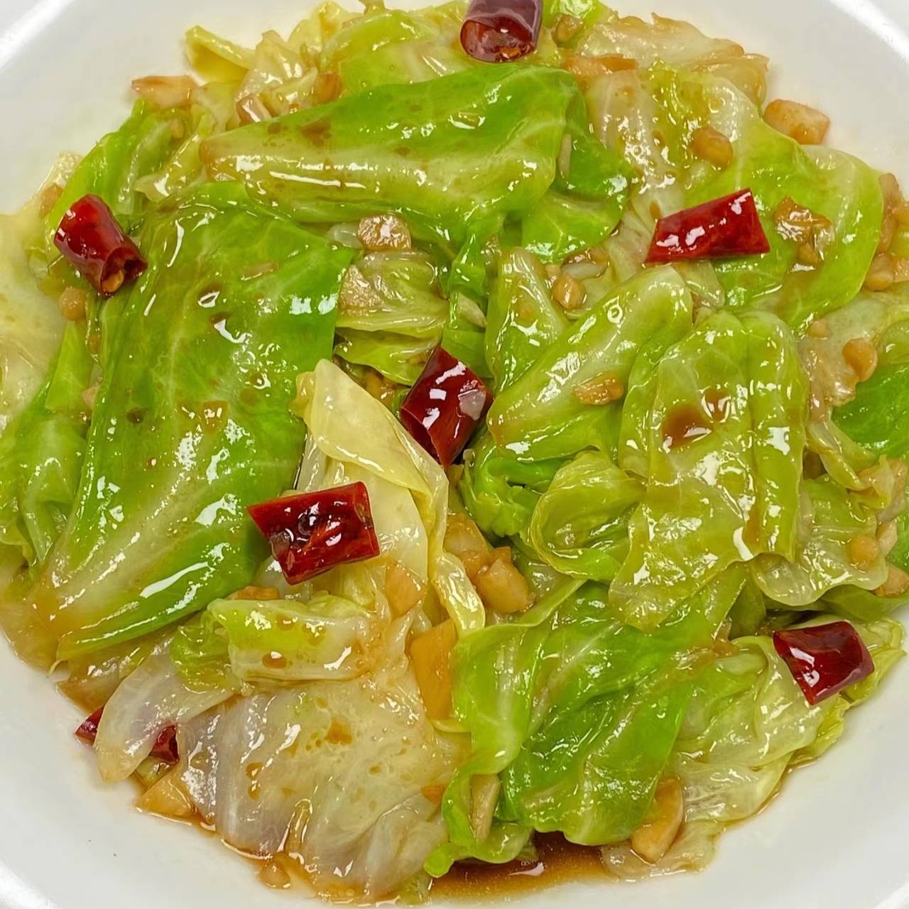 Restaurant De Hunan - 手撕包菜是一道湖南省传统的地方名菜,属于湘菜系。爽脆清甜,口味鲜美。包菜手撕 成大片,干椒斜切成圈,坐锅热油再入包菜片与五花肉片。七八分熟即可上菜以保持点脆口感。 Our Stir Fried “Beijing” Cabbageis one of our best-seller dish that。