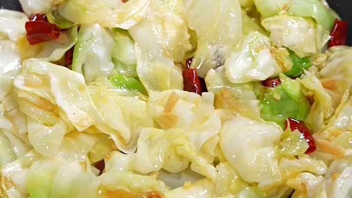 家常菜 手撕包菜Shredded cabbage 红白相间,麻辣鲜香,爽脆清甜。