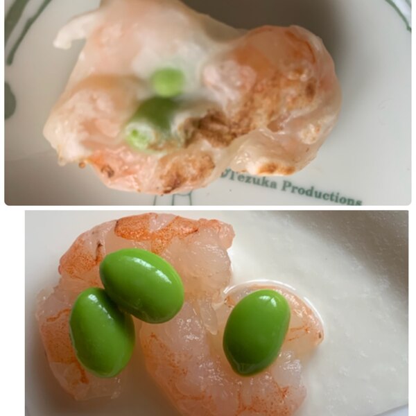 ワンタンの皮で作る「えび棒餃子」: こんなの食べたよ。