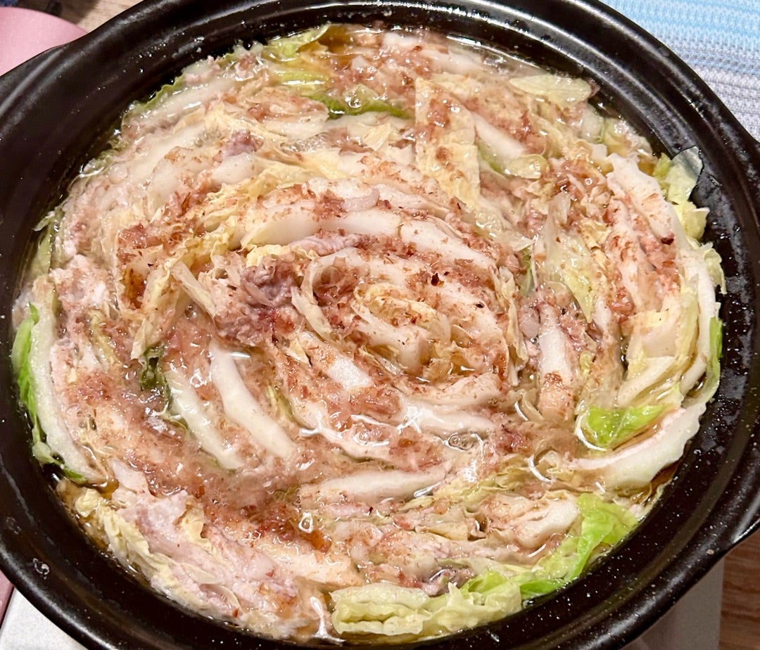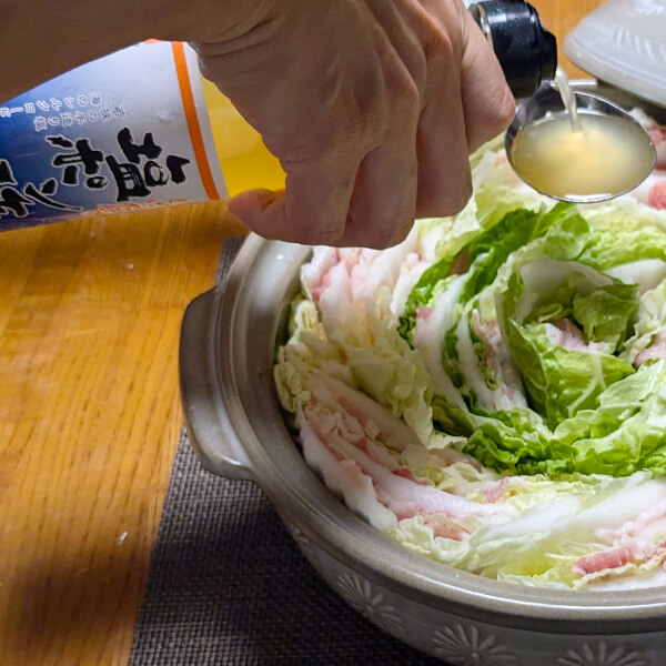 塩ポン酢で鍋のだしができる!豚バラ&白菜のミルフィーユ鍋。