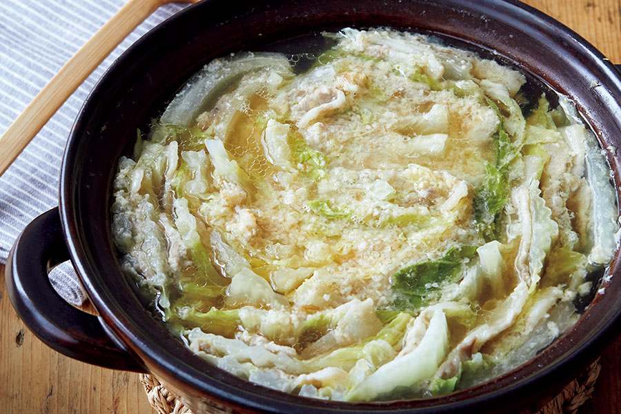 調味料は「日本酒」だけなのにおいしい!とろとろの白菜が絶品「白菜と豚バラのミルフィーユ鍋」。