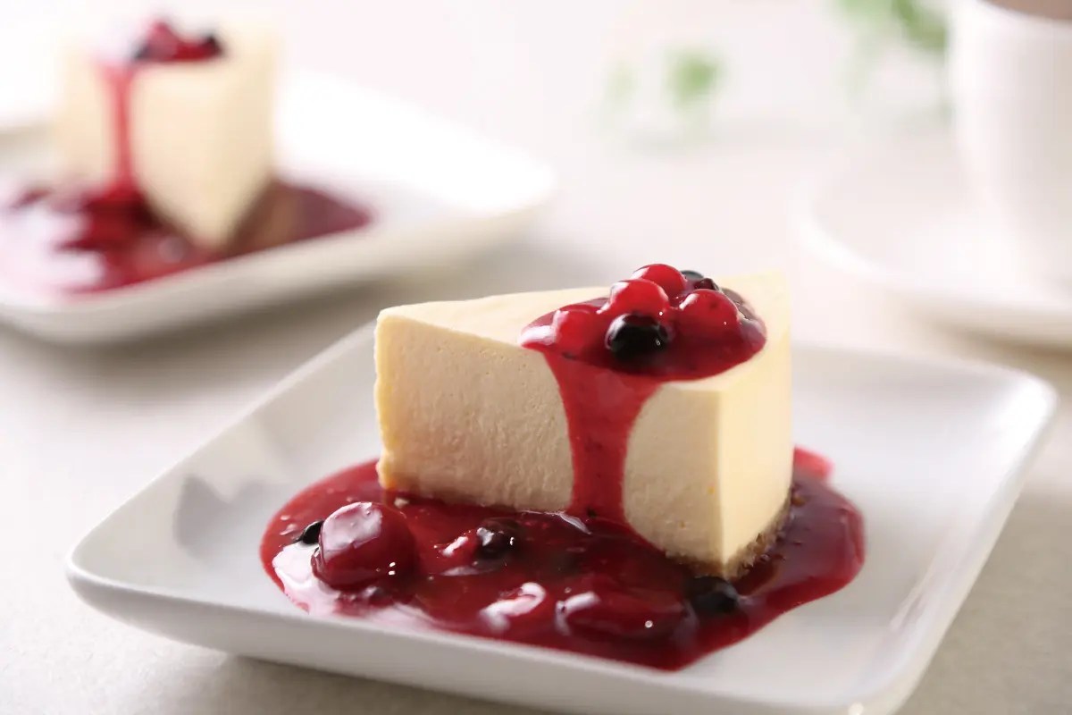チーズケーキ 期間限定でベリーソースに! - カフェ MUG BOAT。