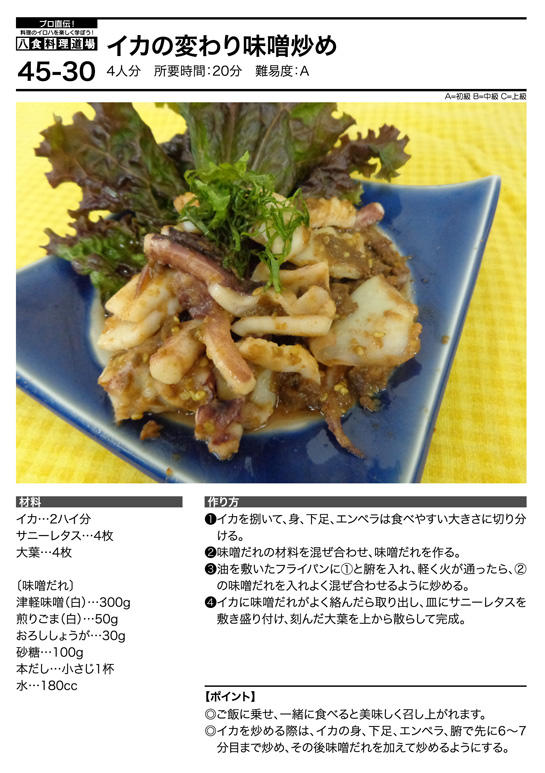 イカの変わり味噌炒め料理道場レシピ集八戸のうまいもんがみんな揃う!The市場!八食センタ。