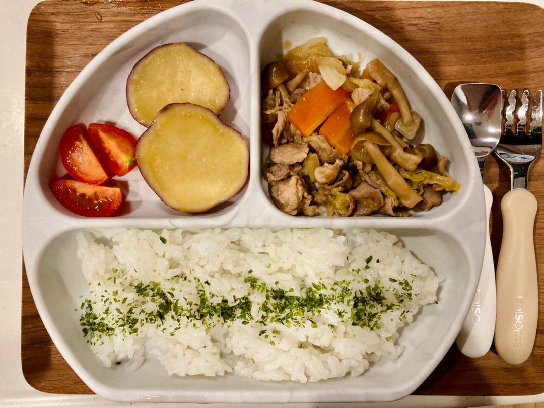 献立 1歳9ヶ月幼児食✩バタポン生姜焼きの取り分け : のんすけ*おちびのおいしいくらし〜離乳食・幼児食。
