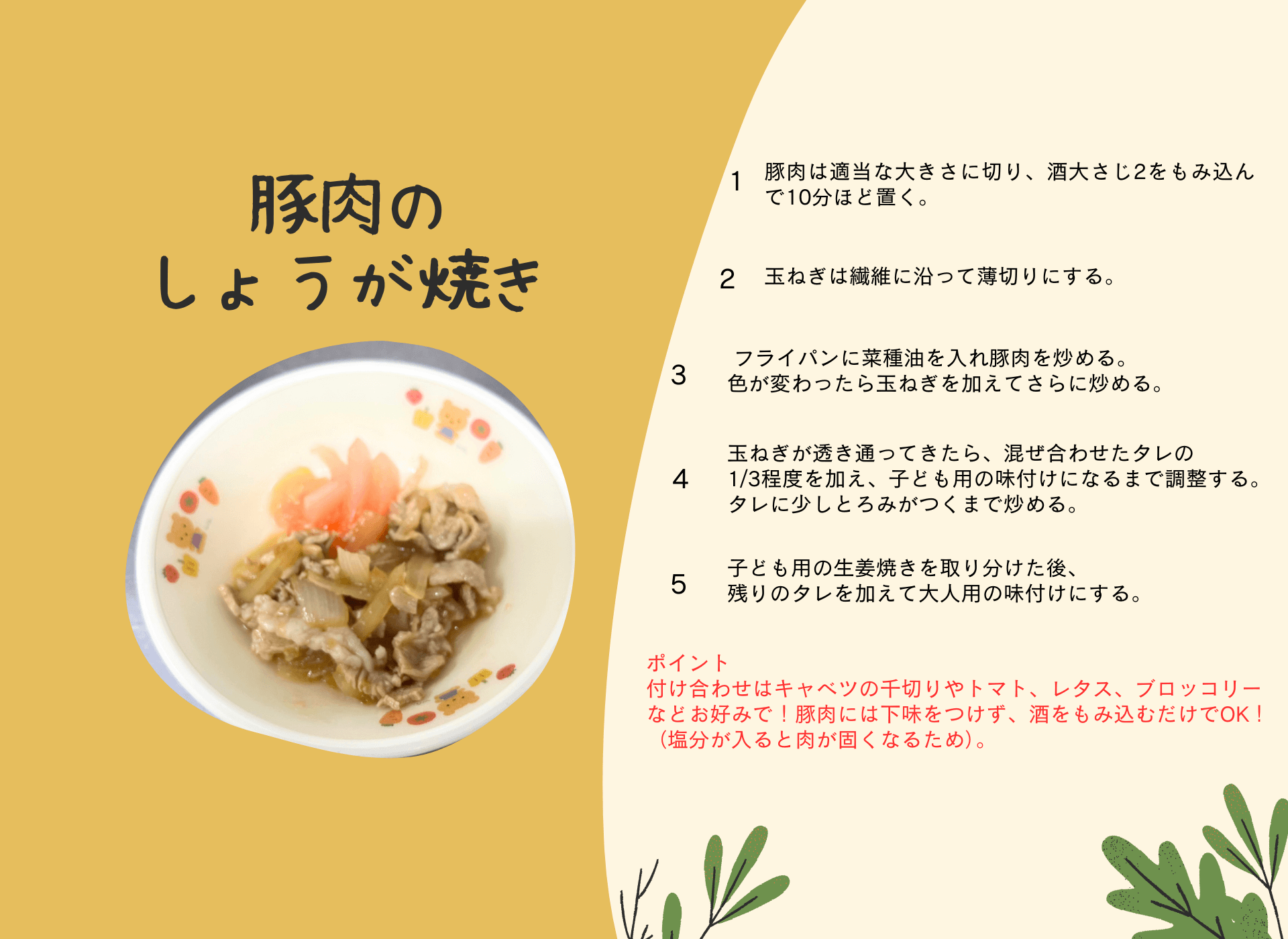 幼児食にもオススメ「しょうが焼き」!「食べることが好き!」を育てる食育ブログ・子どもごはんの専門家 板垣好恵 管理栄養士。