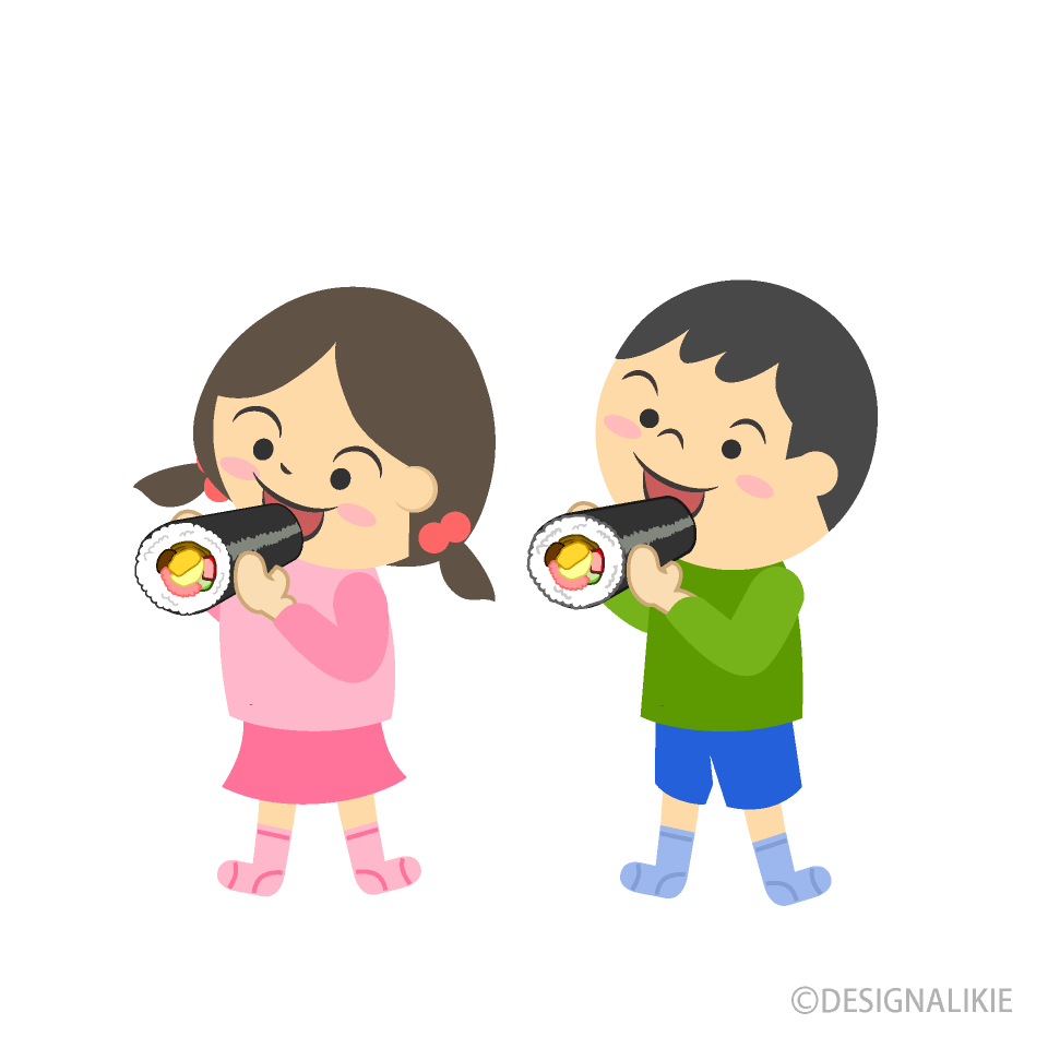 恵方巻を食べる子供たちの無料イラストフリーイラスト素材集 ジャパクリップ。
