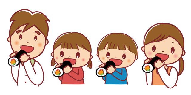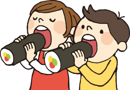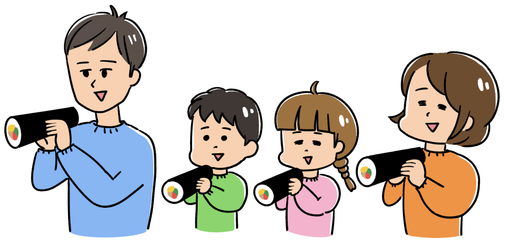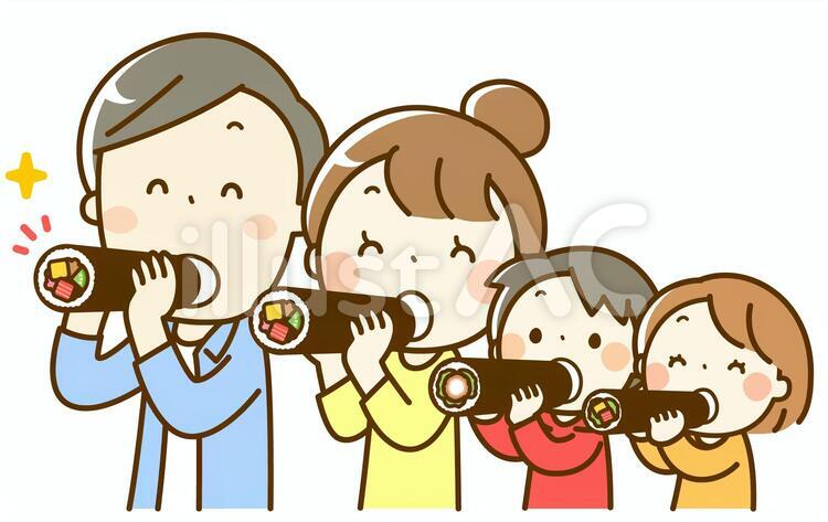 節分に家族で恵方巻きを食べるイラスト - No: 1329190無料イラスト・フリー素材なら「イラストAC」。