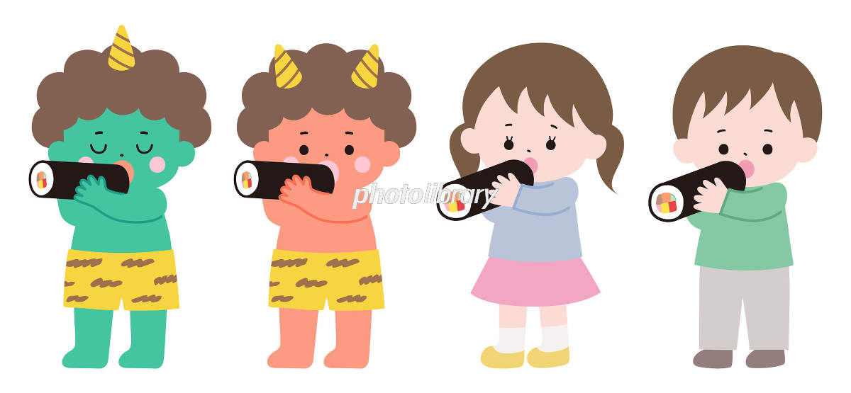節分 恵方巻きを食べる子供たち イラスト素材1742439- フォトライブラリ。