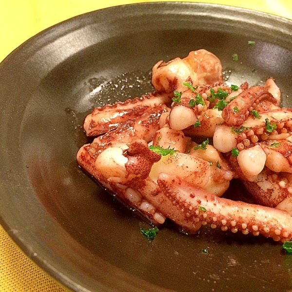 5分で簡単*ビールが進む!イカゲソのニンニク生姜焼き。