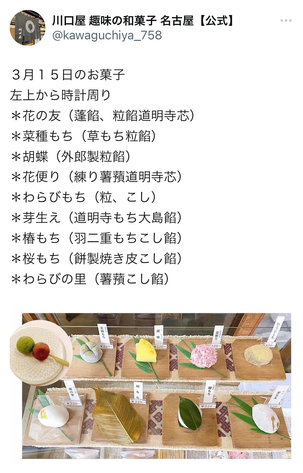 川口屋 趣味の和菓子 名古屋 公式@kawaguchiya_758X。