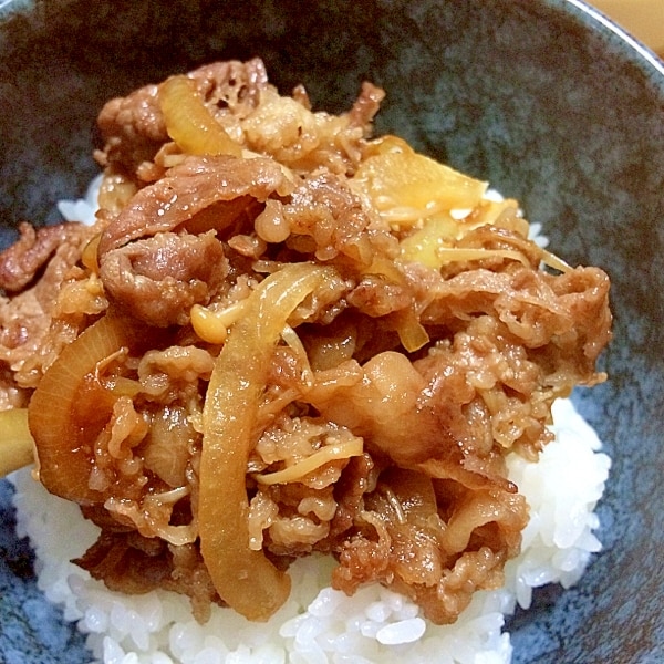調味料2つで!コクうま牛丼 本つゆ めんつゆ 使用。