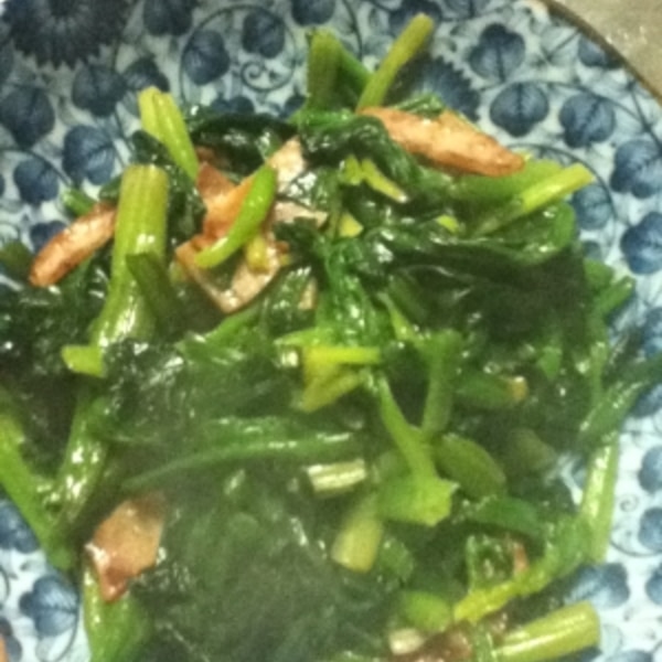 ほうれん草とニンニクの芽とベーコンのオイスター炒め。